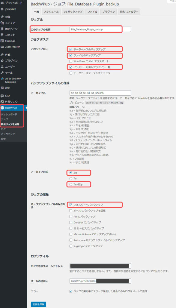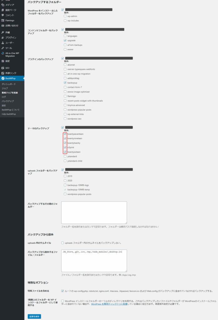 他にも、念のためFTPやDropboxにもチェックを入れて保存しておいてもいいかもしれません。