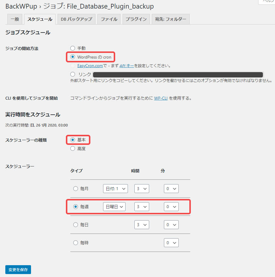 (今回はデフォルトで選択されている曜日のままにしました。時間帯は3時など比較的アクセスの少ない時間を選びます)