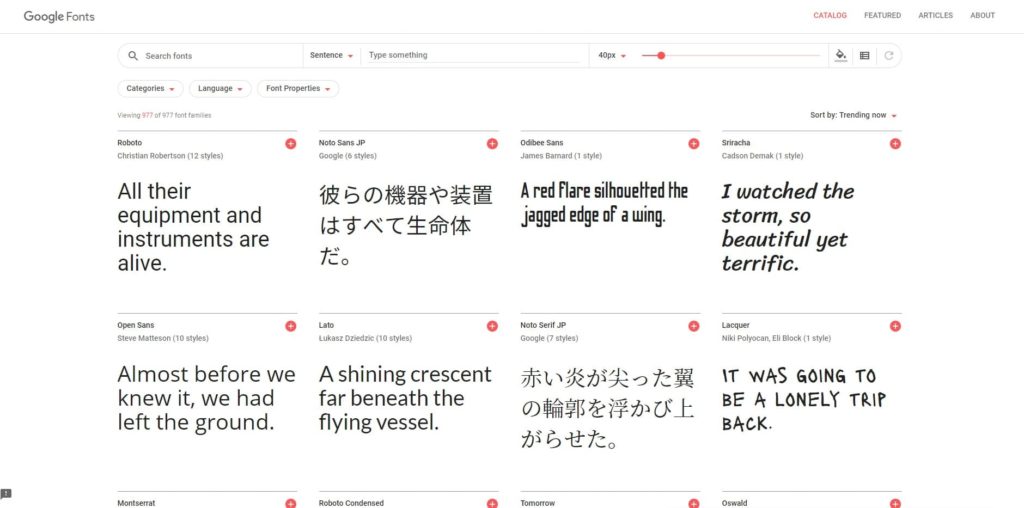 Google Font サイト:https://fonts.google.com/