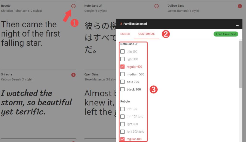 使いたいフォントを全て選び終えたら、「CUSTOMIZE」をクリック。